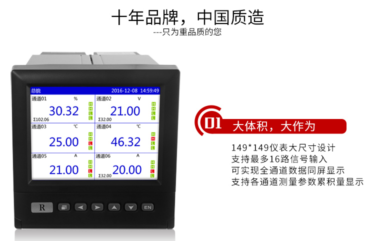 蓝屏无纸记录仪 1-16路可选 5.6英寸大屏