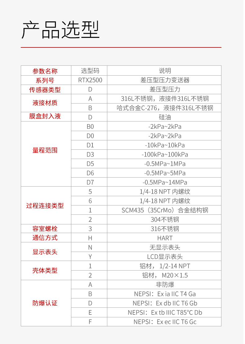 RTX2500压力变送器_差压型